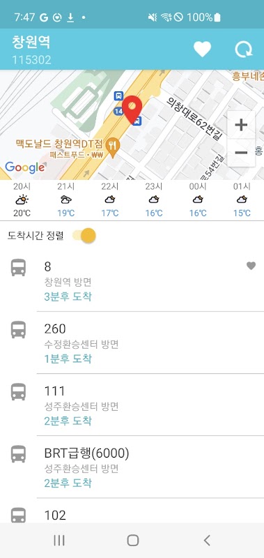 この창원버스 - 버스도착정보 & 정류소날씨について