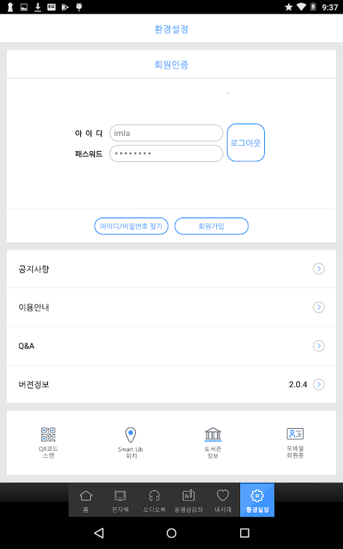 仁川広域市で推進する「本を読む都市仁川」汎市民の読書運動を展開する「Smart Library 2.0」を使用できる機能を提供しています。