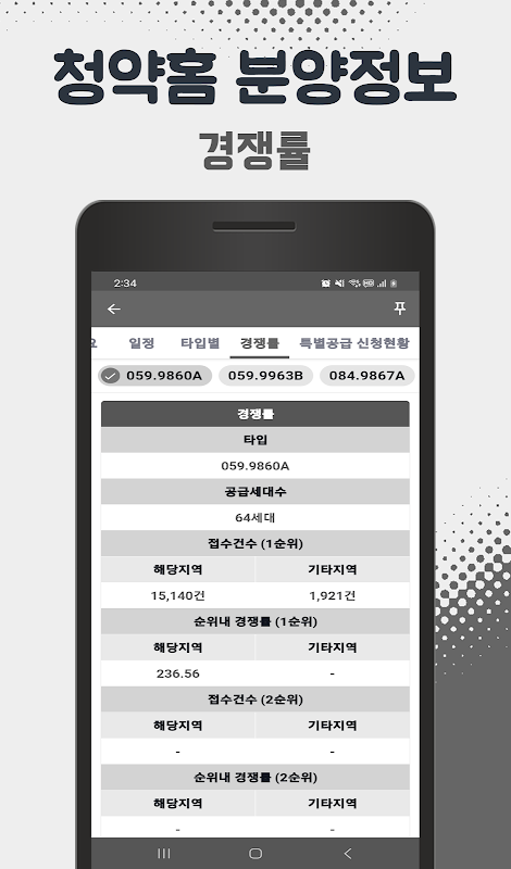 - 競争率、契約契約などの分譲統計情報を提供し、成功した契約戦略の確立に役立ちます。