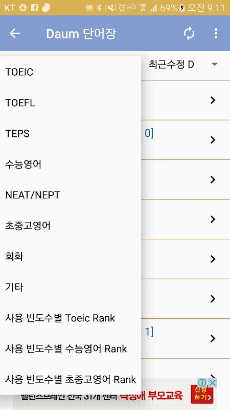 「最高の英語学習」を使用すると、英和辞典、英語の新聞、英語小説、イディオム、Daum単語帳と単語学習機能を使用することができます。