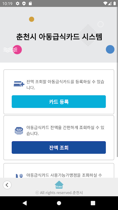 春川シア等級カード利用者のための残高照会及び加盟店照会ができるアプリです。