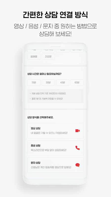 映像相談が負担なら、音声や文字相談機能で相談も進行可能です!