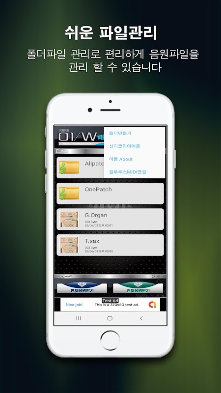 스마트폰으로 악기음원을 저장하고 다시 악기로 보내는 신디사이저전용