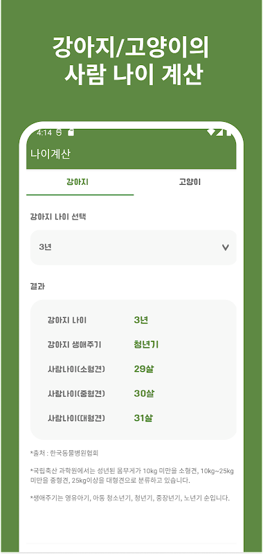 子犬/猫の年齢計算、人気のペット名の確認と推薦、ペットの生年情報記録