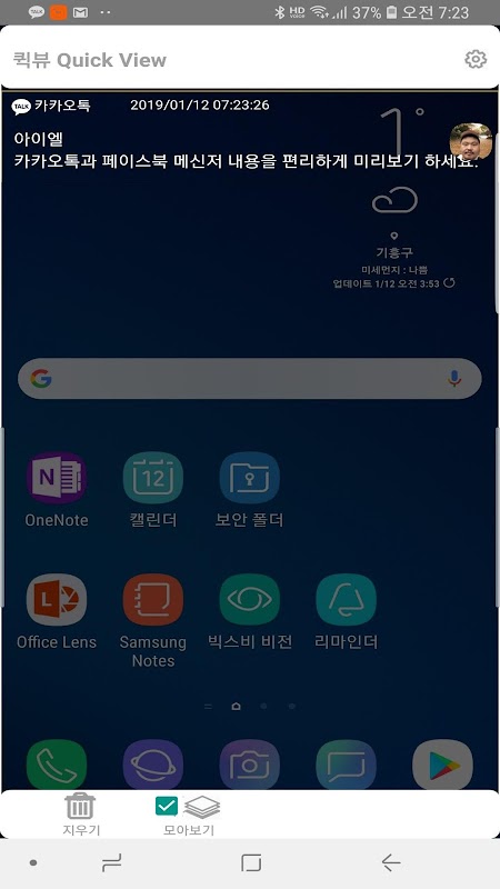 퀵 뷰로 카카오톡과 페메 내용을 편리하기 미리보기 하세요!