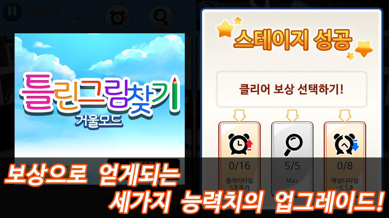 평범한 틀린그림찾기와는 다른, 거울모드로 한 층 업그레이드된 게임을 만나보세요.