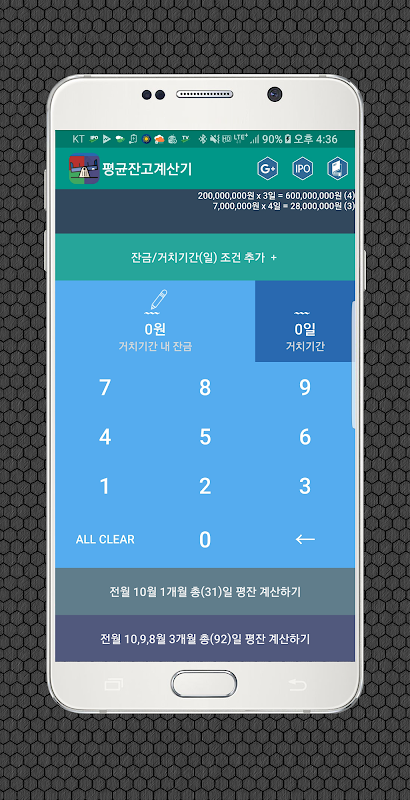 가볍고 최적의 성능과 세련된 인터페이스를 자랑하는 평잔 계산기, 평균 잔고 계산기 입니다.