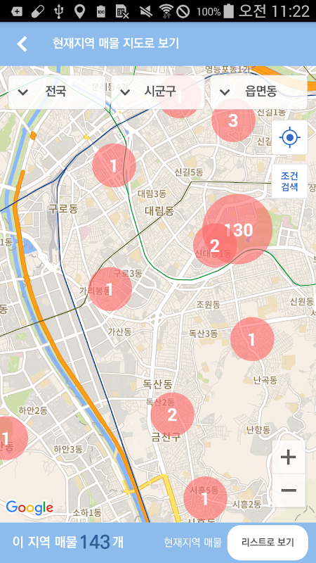 맵으로 방 찾기 : 맵을 드래그 하면서 원하는 지역의 매물의 갯수를 파악한 후 해당 매물들만 볼 수 있어요