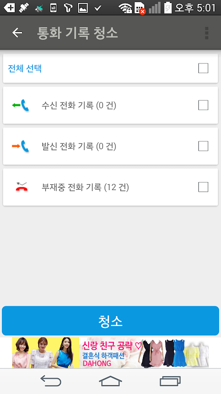 통화 기록(수신 전화, 발신 전화, 부재중 전화 등)과 앱 관리(설치 파일, 용량) 확인 제거 또한 확인하시고 정리하세요.