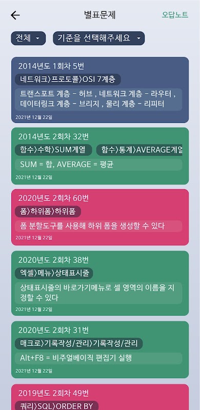 3) 오답노트&메모장: 틀린 문제를 모아 오답노트를 풀어보고, 중요한 문제는 별표 후 메모와 함께 저장