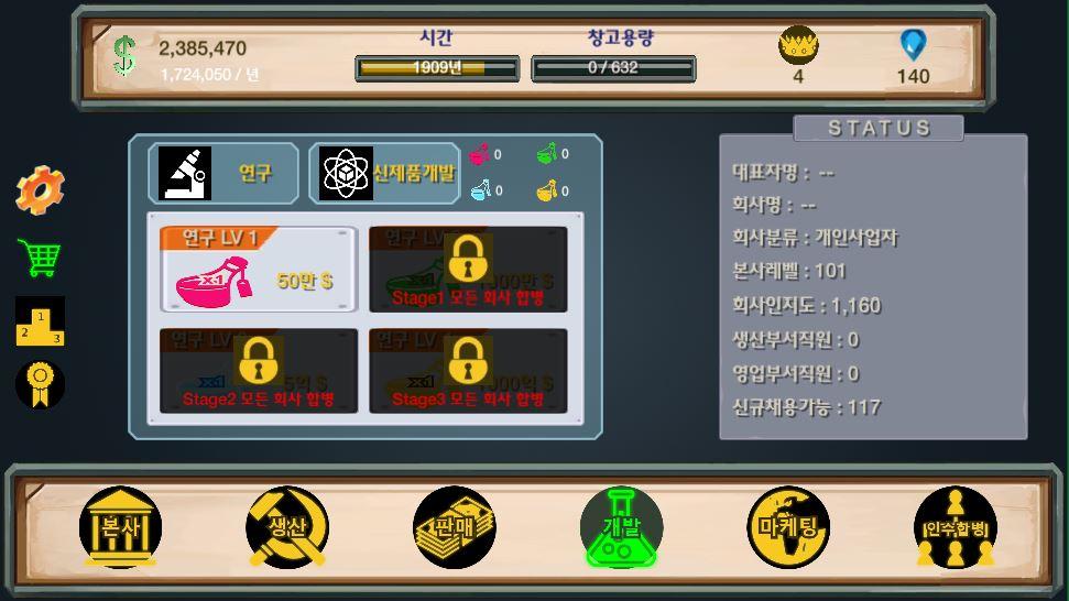 ※研究開発を通じて上位製品のロックを解除してください!上位レベルの製品であるほど、より高い収益をもたらすくれるです。