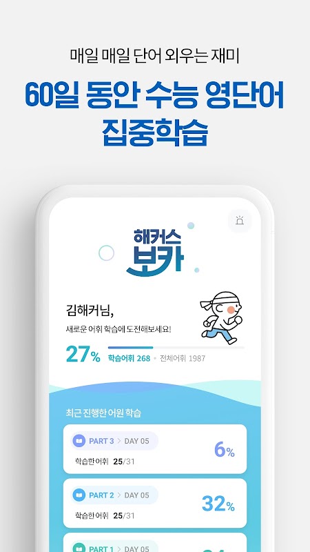 中・高等内身英語から修能に出てくる必須英単語まで、ハッカーズ・ボッカ語源編アプリひとつで、修能英語の必須語彙を語源とともに楽しく学習してみてください。