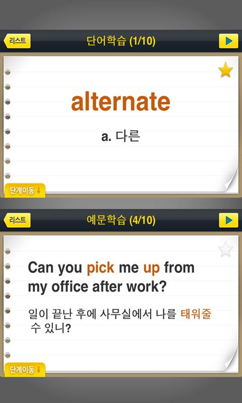 単語例文学習(ヤング▶ハン)、単語例文学習(ハン▶ヤング)、