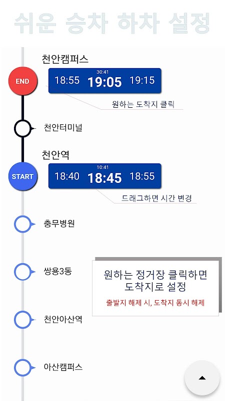 * 승차장에서 하차하는 셔틀장을 선택 시 도착 시간 표시