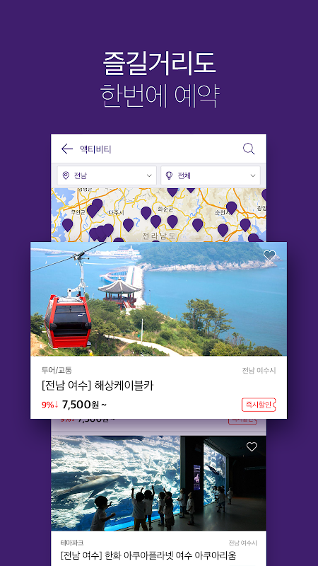 - 전국 1만여 개의 숙소와 액티비티를 최대 80% 할인 예약 할 수 있어요.