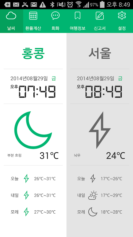 天気 - ホテルを出て、天気が疑問に思って?現地の天気と韓国の天気を提供しています。