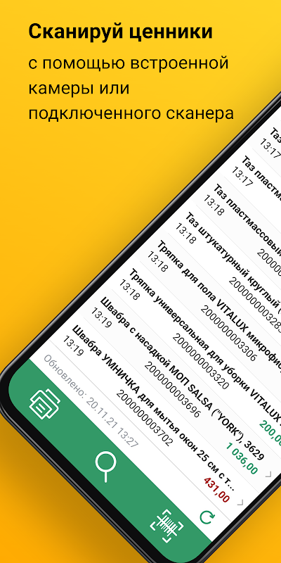 誤った値札をすばやく追跡し、スマートフォンやタブレットから直接新しい値札に置き換えることができます。モバイルアプリケーションを使用するには、1C:UNFまたは1C:Retailとの同期を設定する必要があります。