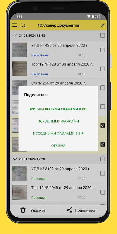 モバイル アプリケーション 1C: ドキュメント スキャナ: