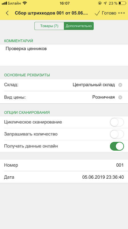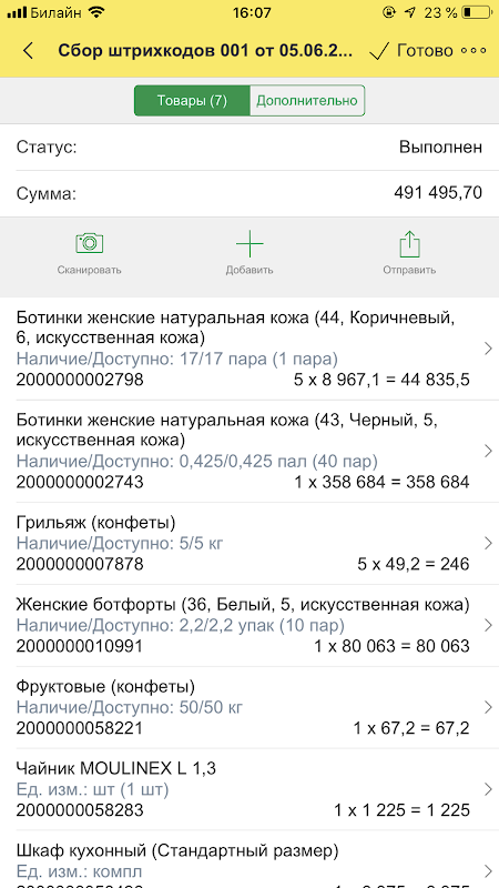 *スキャンまたは手動で入力されたバーコードによる残高と価格の受け取り。