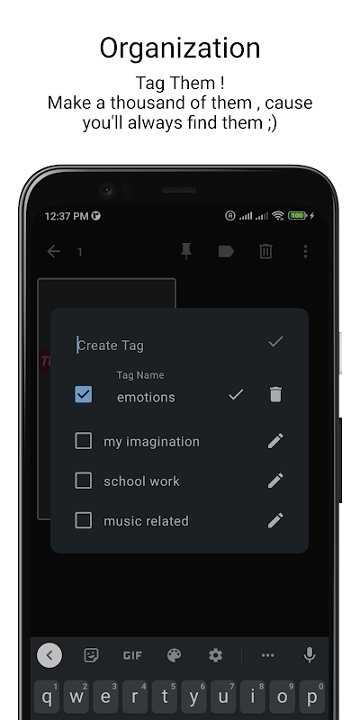マインドマップを整理しやすくするために、タグを付けてからフィルターをかけることができます。