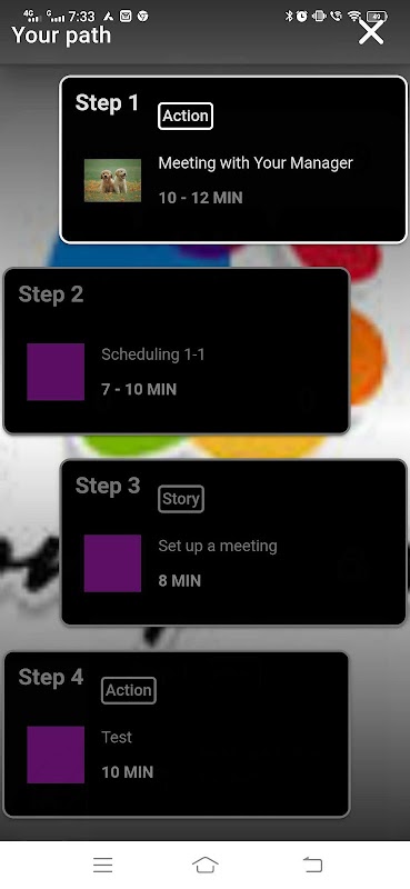 職場でのアクション。インタラクティブなツールやジョブエイド、アプリ内のToDoリストを使って、学んだことを実践的に応用する方法のヒントを得られます。進捗状況を追跡できます。