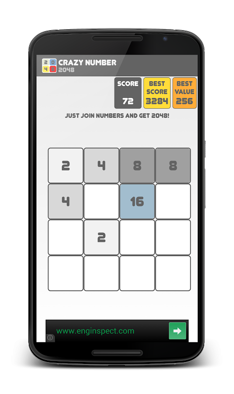The "2048 CRAZY" is the native Android port of the "2048" game created by Gabriele Cirulli. The port introduces new features: