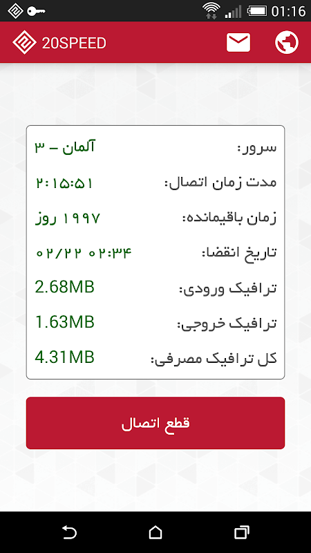 - نمایش مقدار زمان باقیمانده اشتراک و مدت زمان اتصال