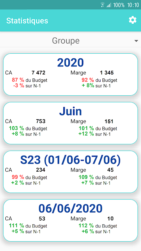 2Bsystem Stats permet de visualiser des chiffres d'affaires et marges en multipériode (jour, semaine, mois, année):