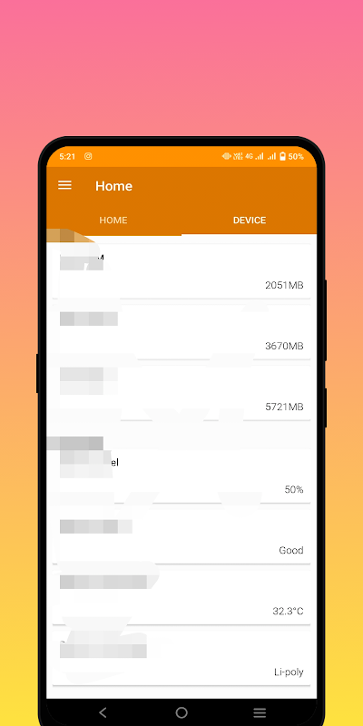 バッテリー、メモリ、ストレージのメーターを使用すると、携帯電話のパフォーマンスを確認できます。