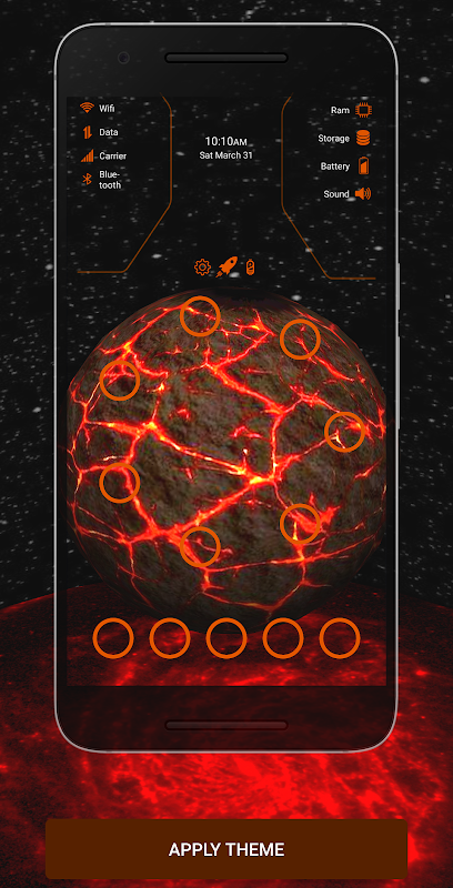 6. Stunning interface: 3D Motion plus Red 3D Galaxy on fire theme wallpapers and vivid tech app icons, vivid and lovely.