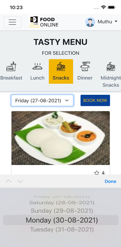 アプリケーションを介した従業員と請負業者のための食品注文システム。