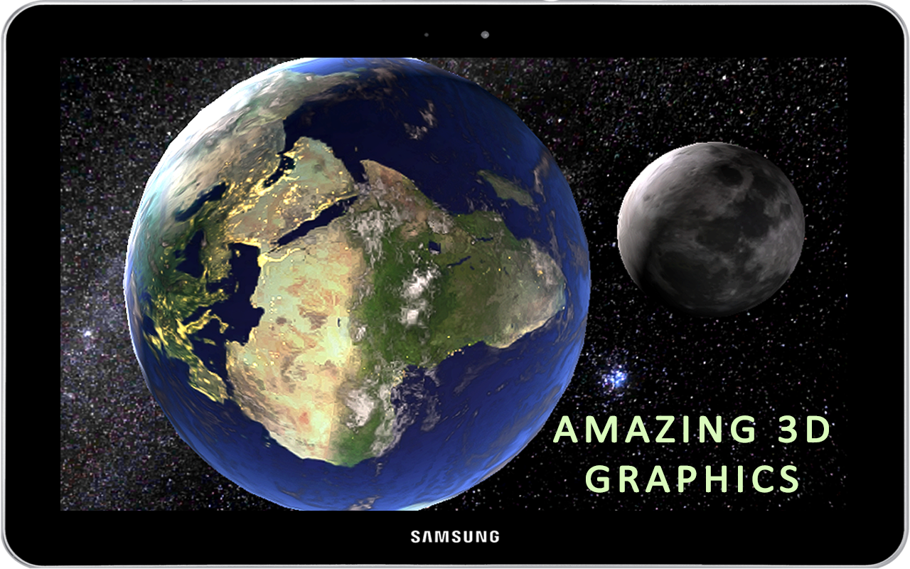 これはそのジャンルの特別な用途です。最も興味深いことに、生きている地球と月のアプリのリアルタイム位置を1つの完全な3D表示にするアプリです。この3Dアニメーションを壁紙の背景として使用し、スクリーンテーマと3Dスクリーンセーバーをロックすることもできます。