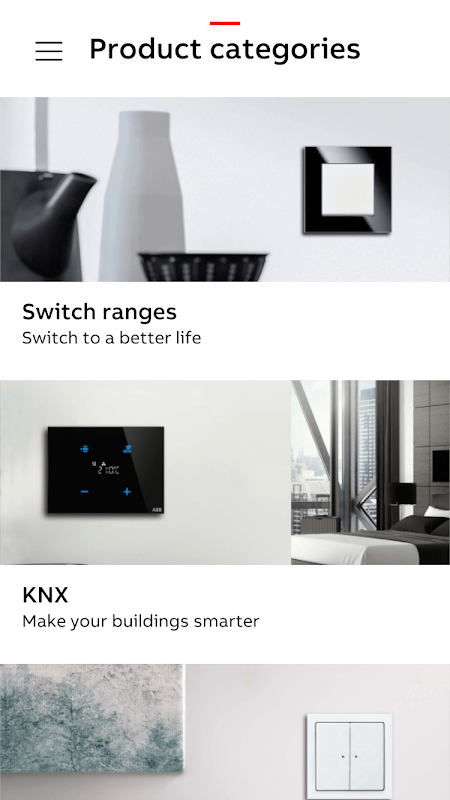 Discover ABB's Smart Buildings portfolio! The assortment includes wiring accessories such as light switches and sockets, door communication systems and high-end smart buildings products such as ABB i-bus KNX and ABB-free@home sensors. With 3D-LiveView, you can view our products live and in 3D on your own wall via augmented reality. If you have chosen your favorite design the App also helps you to locate the closest contact, be it an ABB office or an installer or distributor. Furthermore, you can use the App to take a look at your individual ABB-tacteo KNX sensors, that you have configured via the ABB-tacteo configurator.