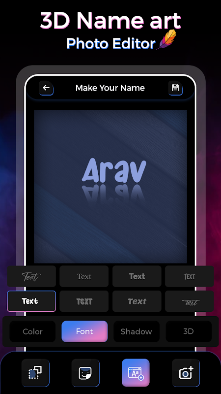 Text Art Maker は、3D テキスト アートと 3D キャプションを使用して写真をデザインできるクリエイティブな名前のテキストを作成するのに役立ちます。