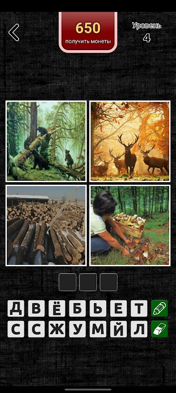 各レベルには 4 つの神秘的な絵があり、あなたの課題はそれらの間のつながりを発見し、一般的な単語を推測することです。機知と論理的思考が必要です。答えをより速く、より正確に見つけるほど、より多くのポイントを獲得できます。