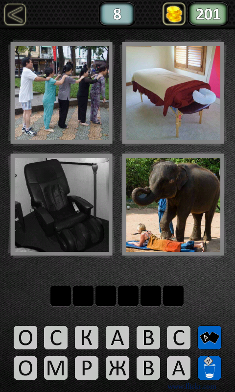 ゲームのルールはとてもシンプルです。各レベルでは、4枚の写真(写真)と1セットの文字と入力ボックスが表示されます。これらの写真を結合して入力する単語を1つ推測する必要があります。これはとてもエキサイティングです!