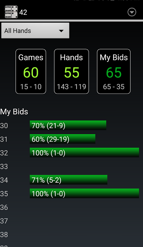 ドミノゲームの結果は、アプリにローカルに保存されます。統計にアクセスして、あなたがどのように測定しているかを確認してください。