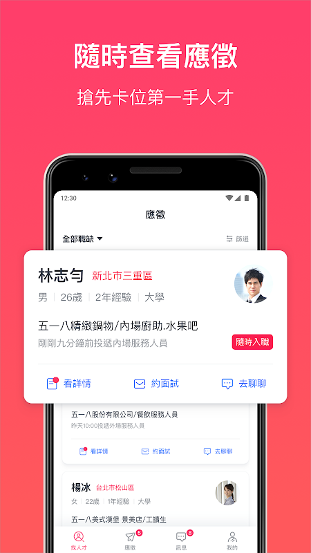 各種訊息不漏接,徵才零時差