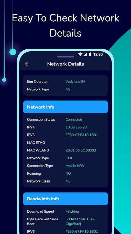 このアプリは、すべてのネットワーク、WiFi、Simの詳細に関する情報を表示します。