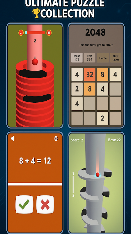 ♦ アーケード&リフレックス:カラースイッチ、ナイフヒット、ボールズブリックブレーカー、ボールブラスト、ジグザグ、スタック、フラッピーバード、スローモーションフォール、ヘリックスジャンプ…