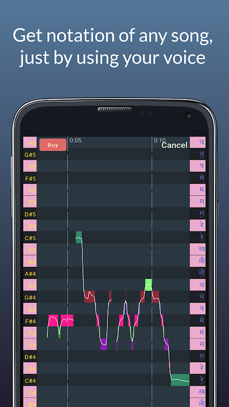 アプリはインドの視聴者向けに特別に作成されており、アプリ内のヒンドゥスターニー語とカルナティック語の記譜法のスタイルはどこでもあります。