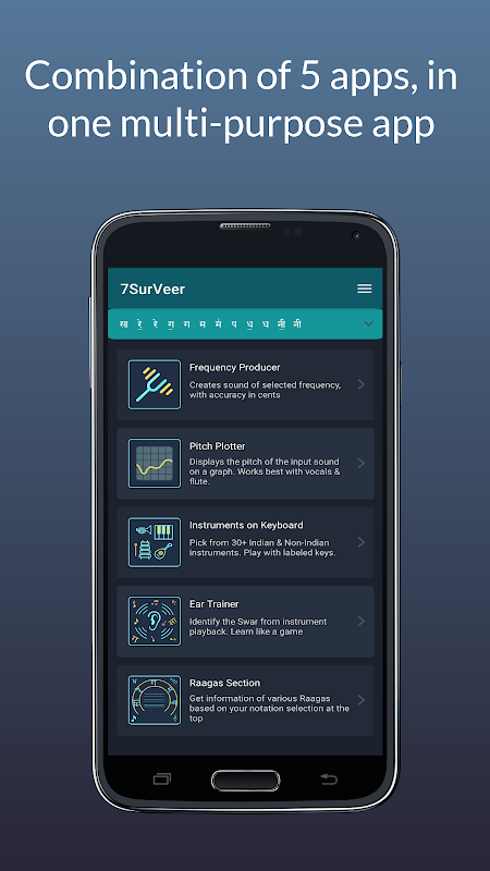SaatSurVeerは、メロディックな音楽学習のニーズに対応するアプリです(Read As:7SurVeerまたはSaatSur veer)