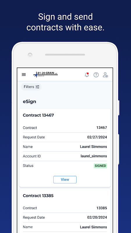81-20 Grain アプリは、業務を穀物施設に接続する重要なモバイル ソリューションで、ビジネスの管理と成長に役立つリアルタイムの実用的な情報を提供します。アプリを最大限に活用し、最新のコミュニケーションを維持するには、通知を許可することを選択することをお勧めします。