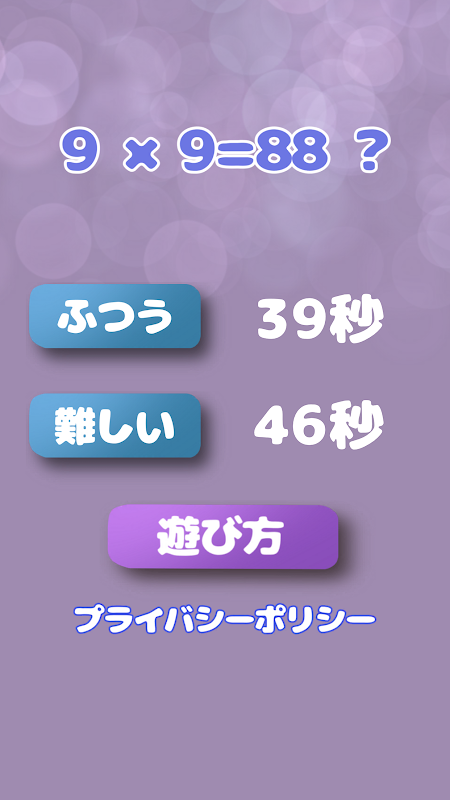 九九の掛け算を覚えて、素早く正しい答えを判断してハイスコアを目指しましょう!