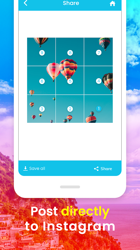 3×1、3×2、3×3、3×4、3×5、3×6グリッドで写真をトリミングし、Instagramに直接共有するのに最適な無料のスーパーグリッドアプリ。大きな長方形の個人の写真やパノラマを、比類のないレベルの詳細と柔軟な回転およびスケーリングオプションを備えた多数の高解像度の正方形の写真に分割して、共有します。カジュアルなセルフショット、街のスカイライン、山の風景など、Instaプロフィールページで見栄えがします。友達に畏敬の念を抱かせ、息をのむような高解像度画像でInstaプロフィールページの訪問者を感動させてください。