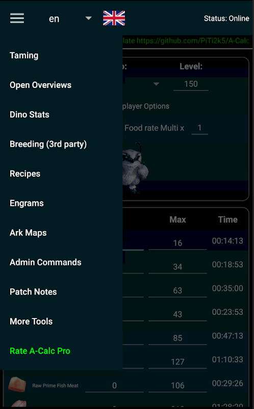 A-Calc Ark Taming Calculator の主な機能の概要: