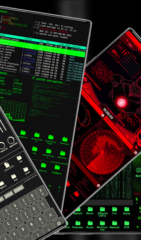 端末のようなクールな UI でハッカー ライフを体験するだけでなく、ホーム画面を上にスライドするだけで、App Drawer を備えた通常のランチャーとしても使用できます。