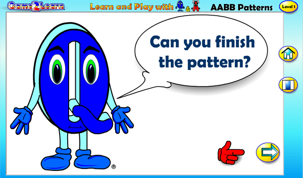 AABB patterns with Q&A includes a number of gamification elements designed to challenge children and engage them in the learning experience. These elements combined with the open navigation and non-threatening learning environment foster a child's confidence, understanding and independent learning skills.