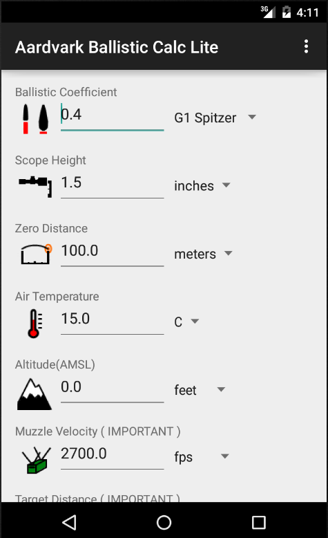 電卓の使い方は簡単であり、あなたのショットの弾道、与えられた変数は、あなたが入力をシミュレートします。アイコンは、あなたが急いで必要とする変数を見つけるのに役立つ。
