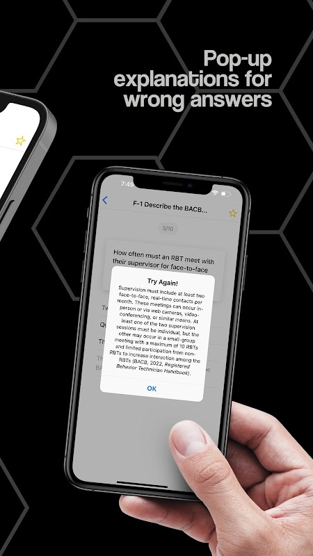 **このアプリは、RBT になるために必要な 40 時間のトレーニングにはカウントされません。このアプリは、ユーザーがテストのために勉強するのに役立ちます。**